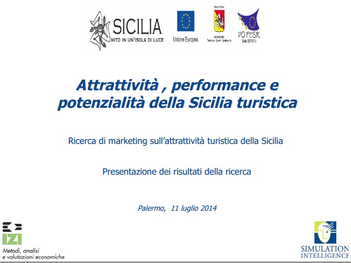 È quanto emerge dalla ricerca di marketing ‘Attrattività, performance e potenzialità della Sicilia turistica’, finanziata dai fondi del Po-Fers 2007/13 e realizzata da Izi – Metodi, analisi e valutazioni economiche e da Simulation Intelligence.