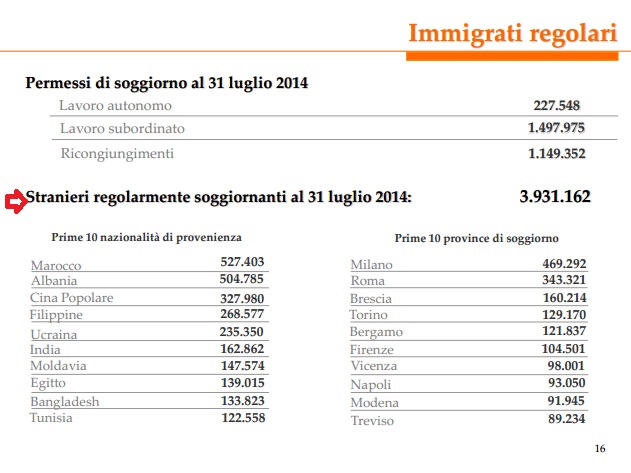 Gli stranieri regolarmente soggiornanti in Italia sono tre milioni, 931.162.