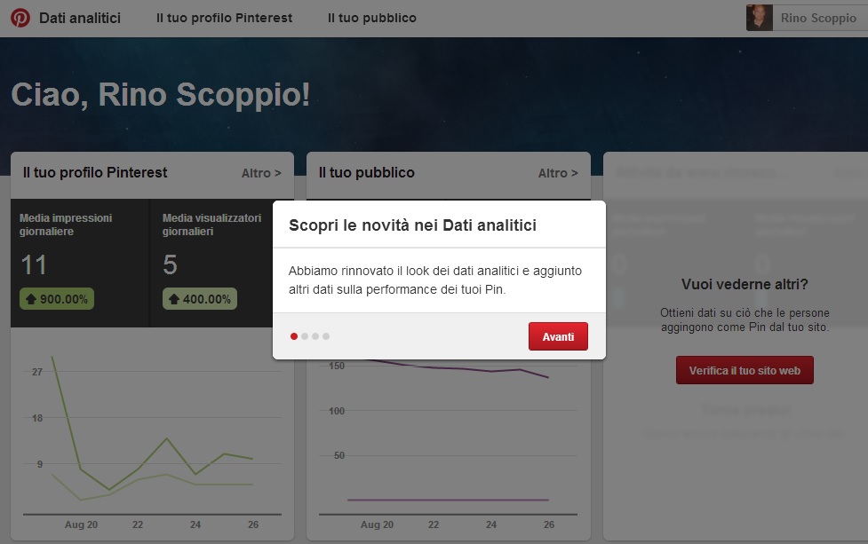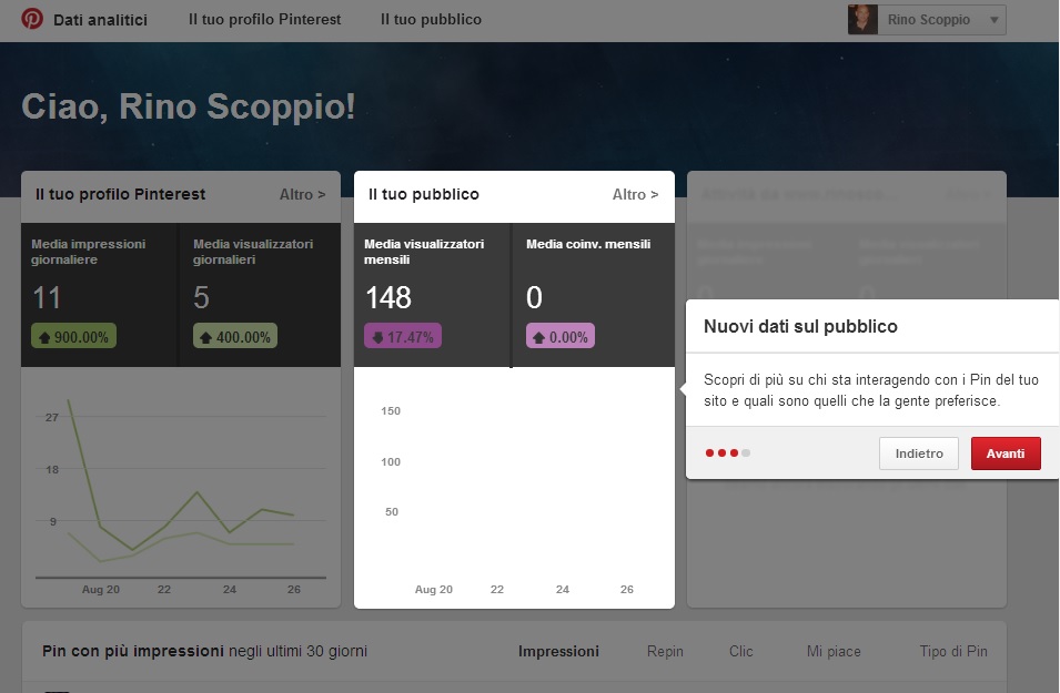 Per accedere al nuovo Analytics di Pinterest per i profili Business, clicca QUI