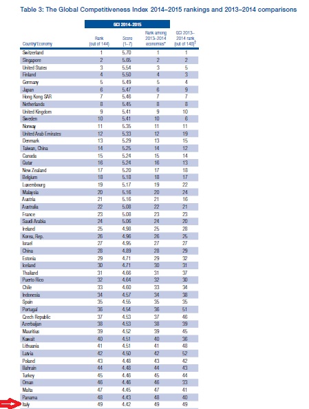 In Europa la situazione è ricca di luci ed ombre. Progrediscono Irlanda (25esima), Portogallo (36esimo) e Grecia (81esima), mentre ristagnano Francia (23esima), Spagna (35esima) e Italia (49esima)…”