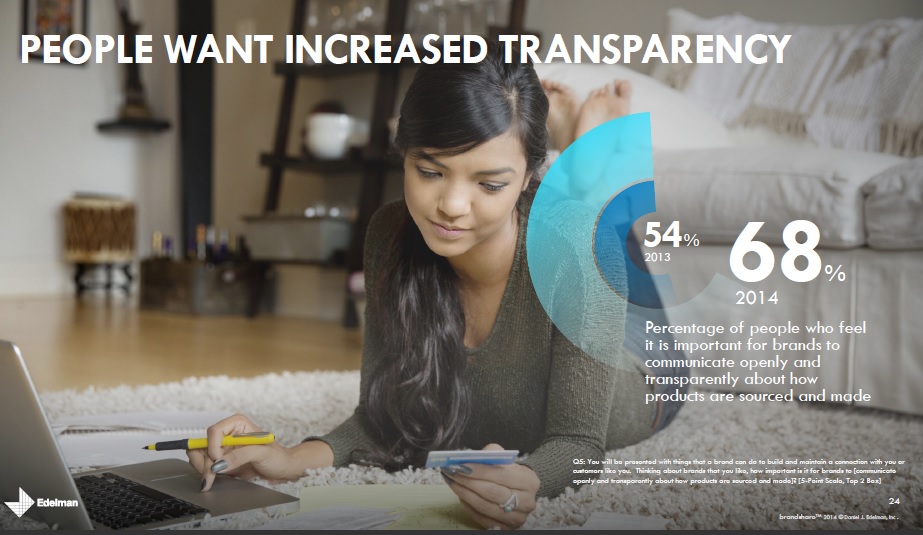 3. Il 68% dei consumatori vuole maggiore trasparenza nella comunicazione: come si svolge la produzione, da dove arrivano i materiali, quali sono i processi produttivi.