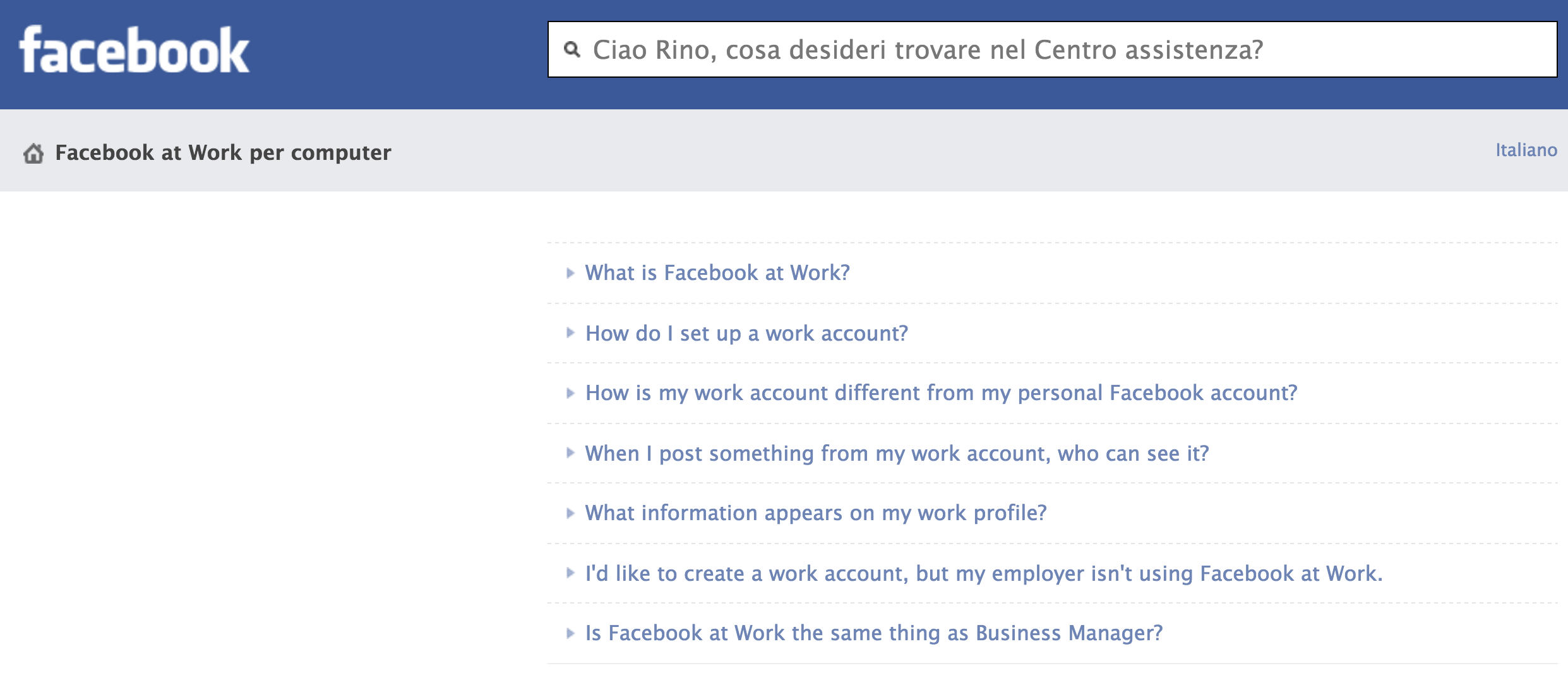 Ecco i dettagli dalla pagina ufficiale di Facebook at Work.