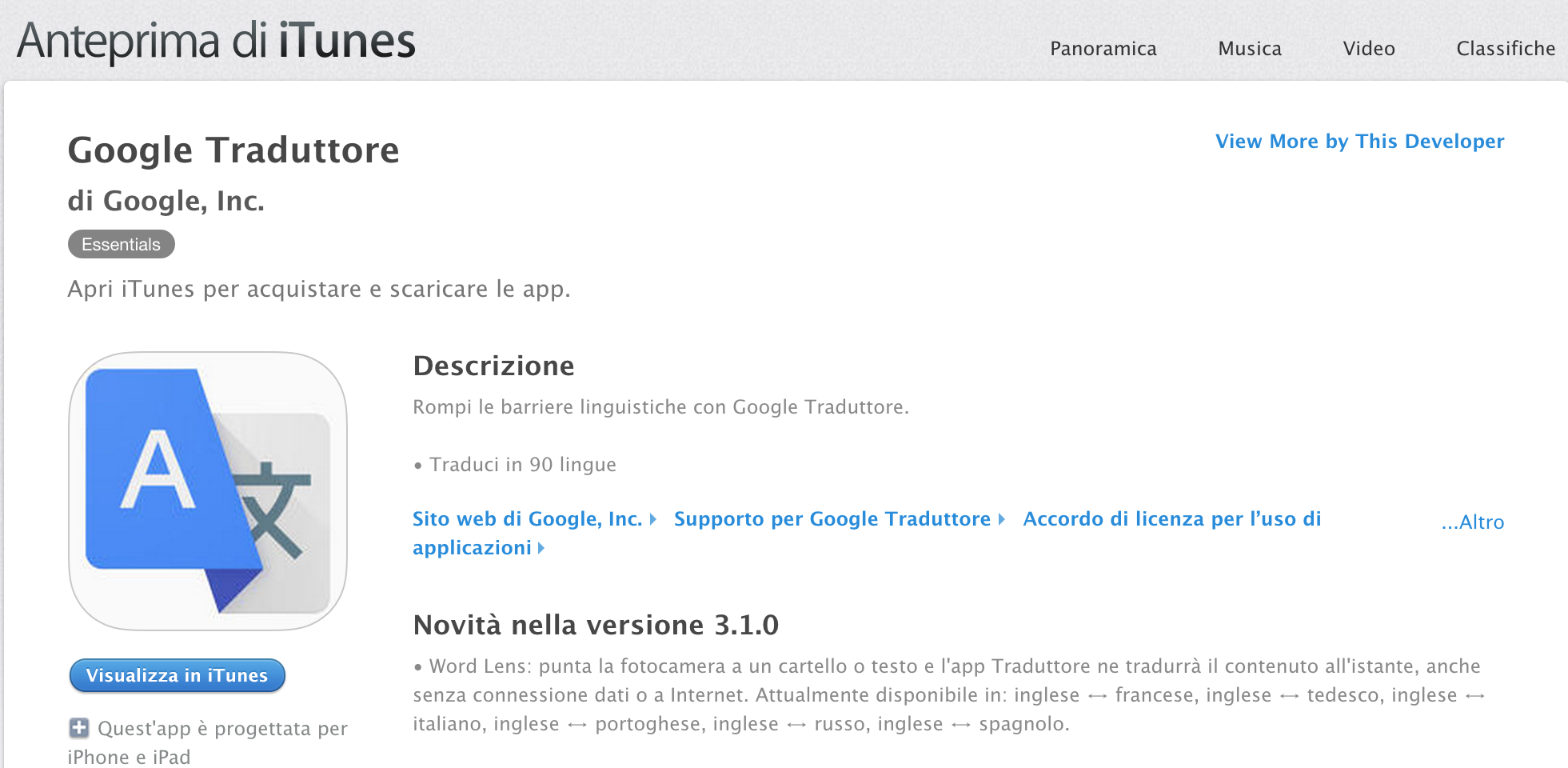 Per il momento la traduzione istantanea è disponibile da e verso l’inglese con francese, tedesco, italiano, portoghese, russo, spagnolo,.