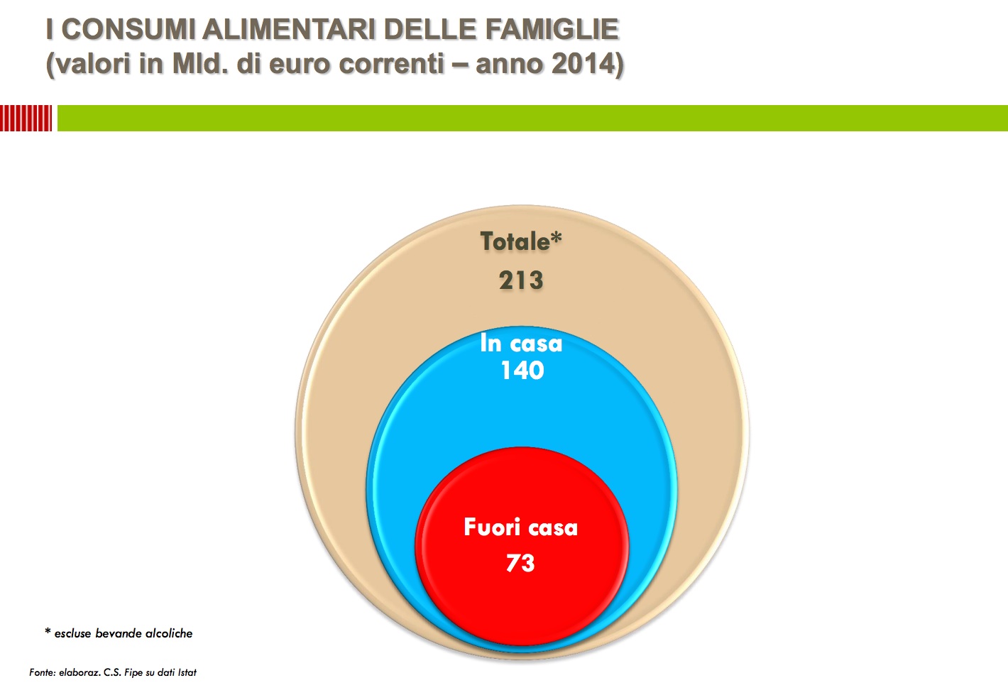 Numeri alla mano, secondo l’ultimo report del Fipe (Federazione italiana pubblici uffici), risulta che la spesa delle famiglie per il “fuori casa” è stata nel 2014 di 73 miliardi di euro, di cui 18 miliardi di euro hanno riguardato i bar nelle loro diverse tipologie.