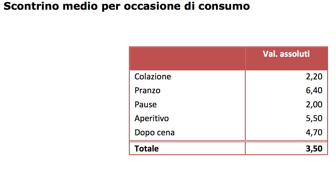 Lo scontrino medio è di 3,50 euro, per un totale di oltre 5 miliardi di transazioni commerciali effettuate nei bar: in particolare, la colazione vale 2,20 euro e il pranzo 6,40 euro.