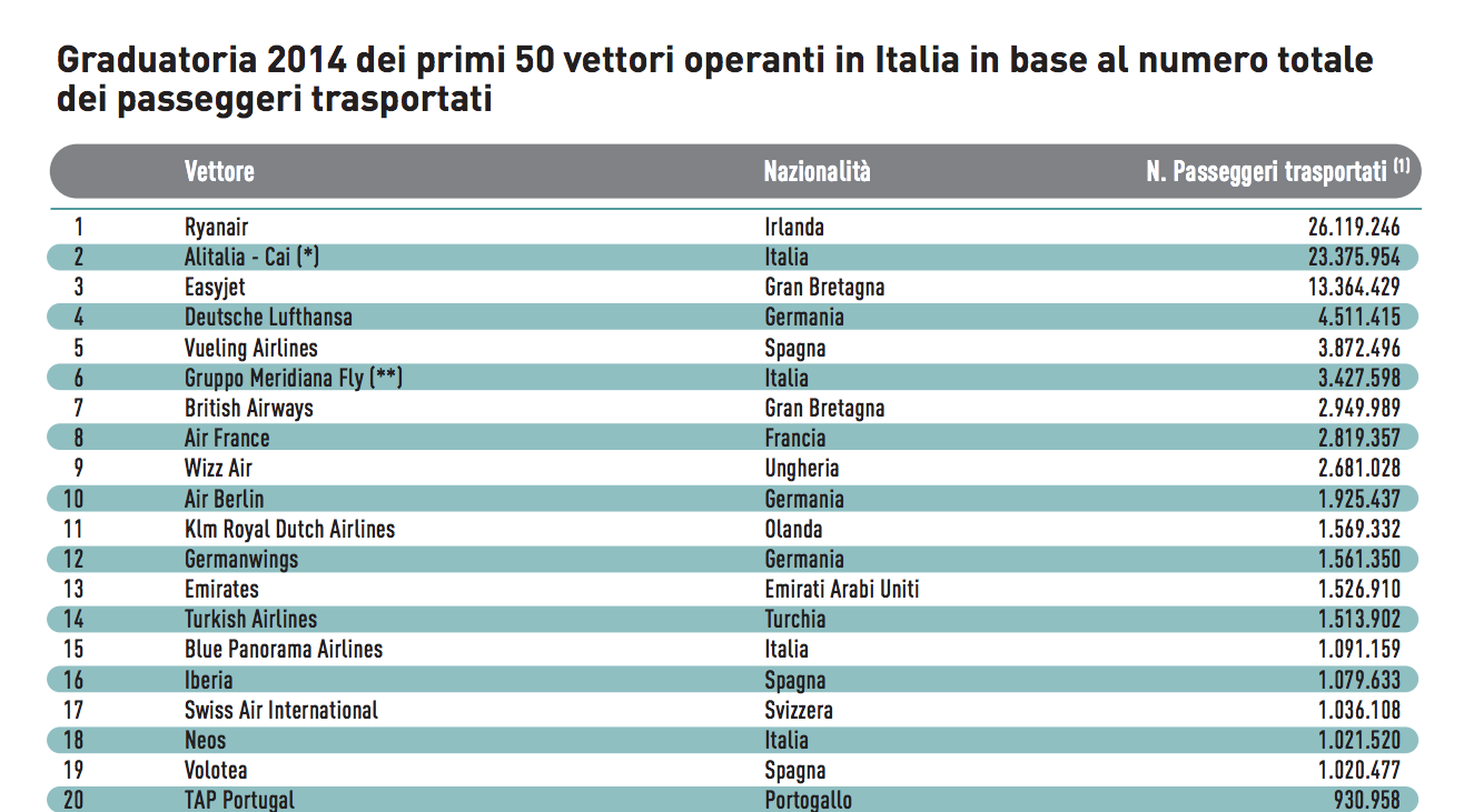 Home » Logistica & Trasporti » IL SORPASSO E’ AVVENUTO. Ryanair è il primo vettore in Italia. Scarica i dati completi sul sistema del trasporto aereo.