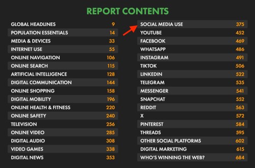 La sezione dedicata ai social si trova a pagina 375 del report.