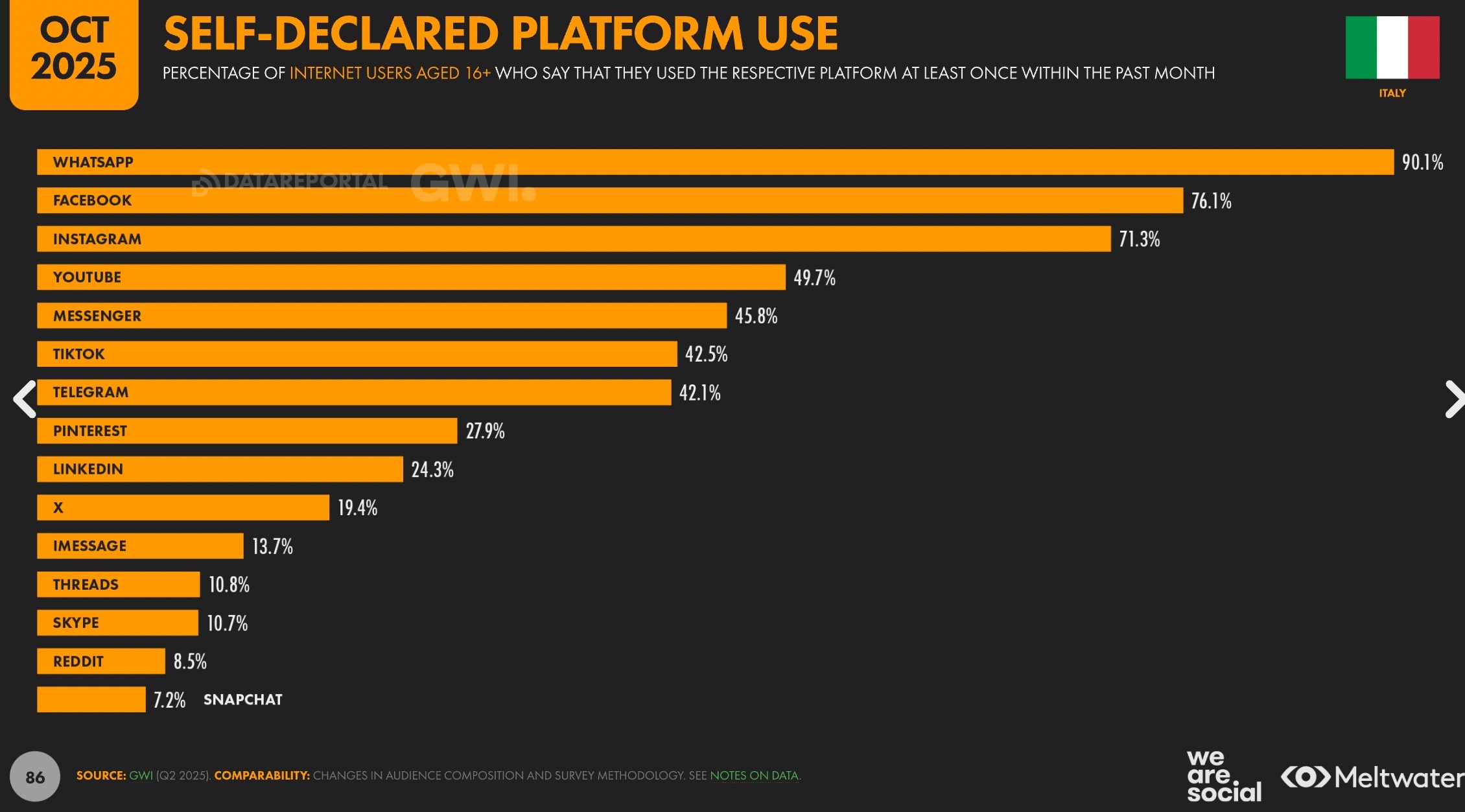Ecco i social media e le piattaforme di messaggistica piu’ usate nel nostro paese.