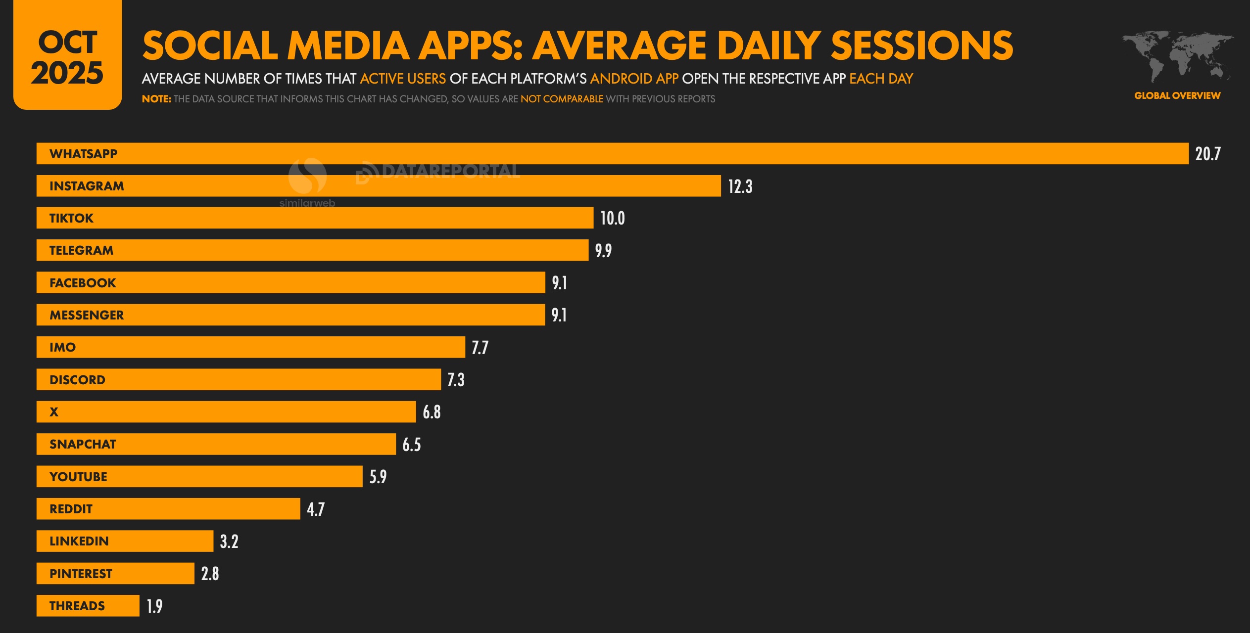 Il numero di volte in cui apriamo un’applicazione social o di messaggistica nel corso della giornata.