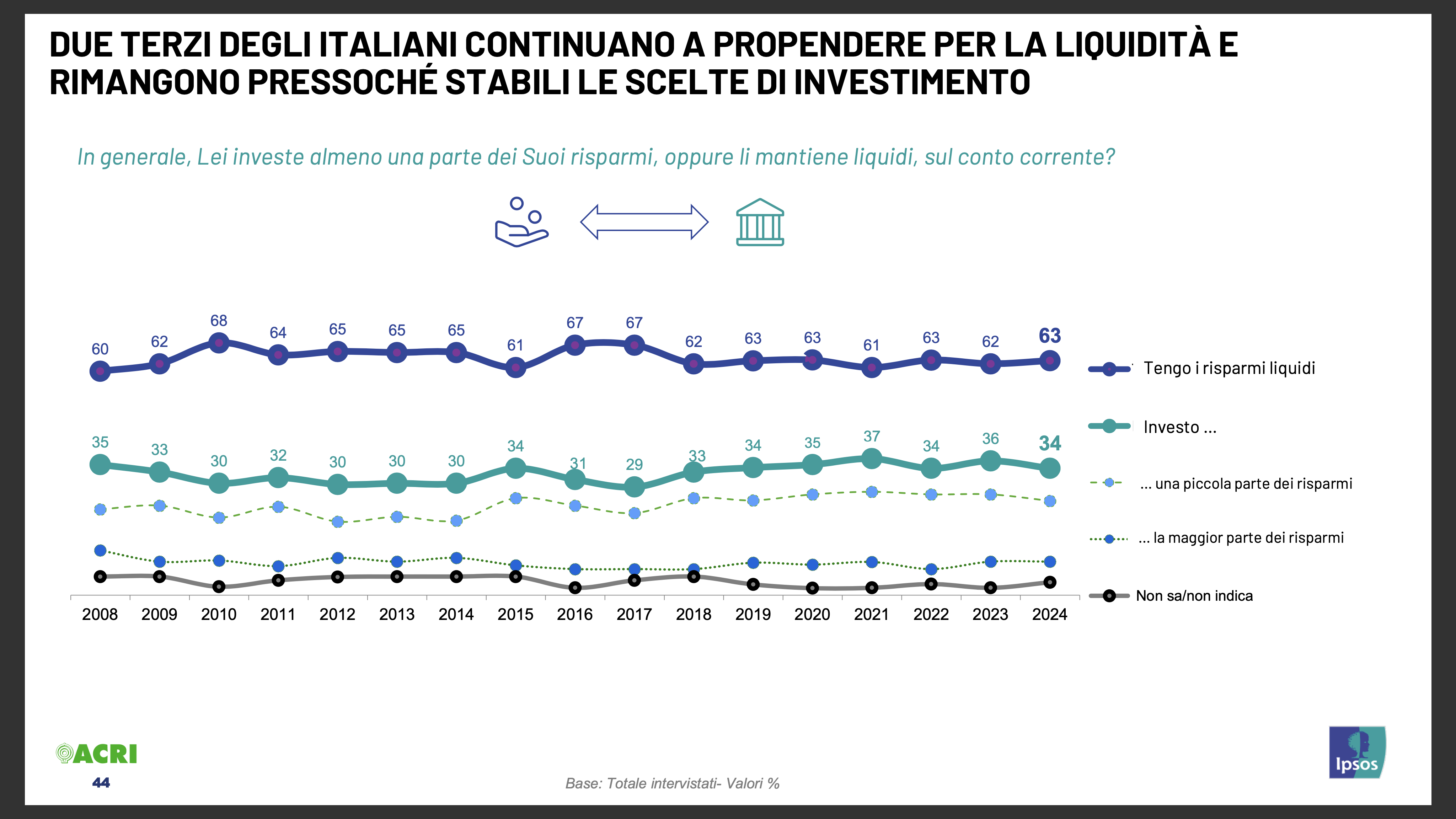 La stragrande maggioranza preferisce mantenere liquidi i propri risparmi.