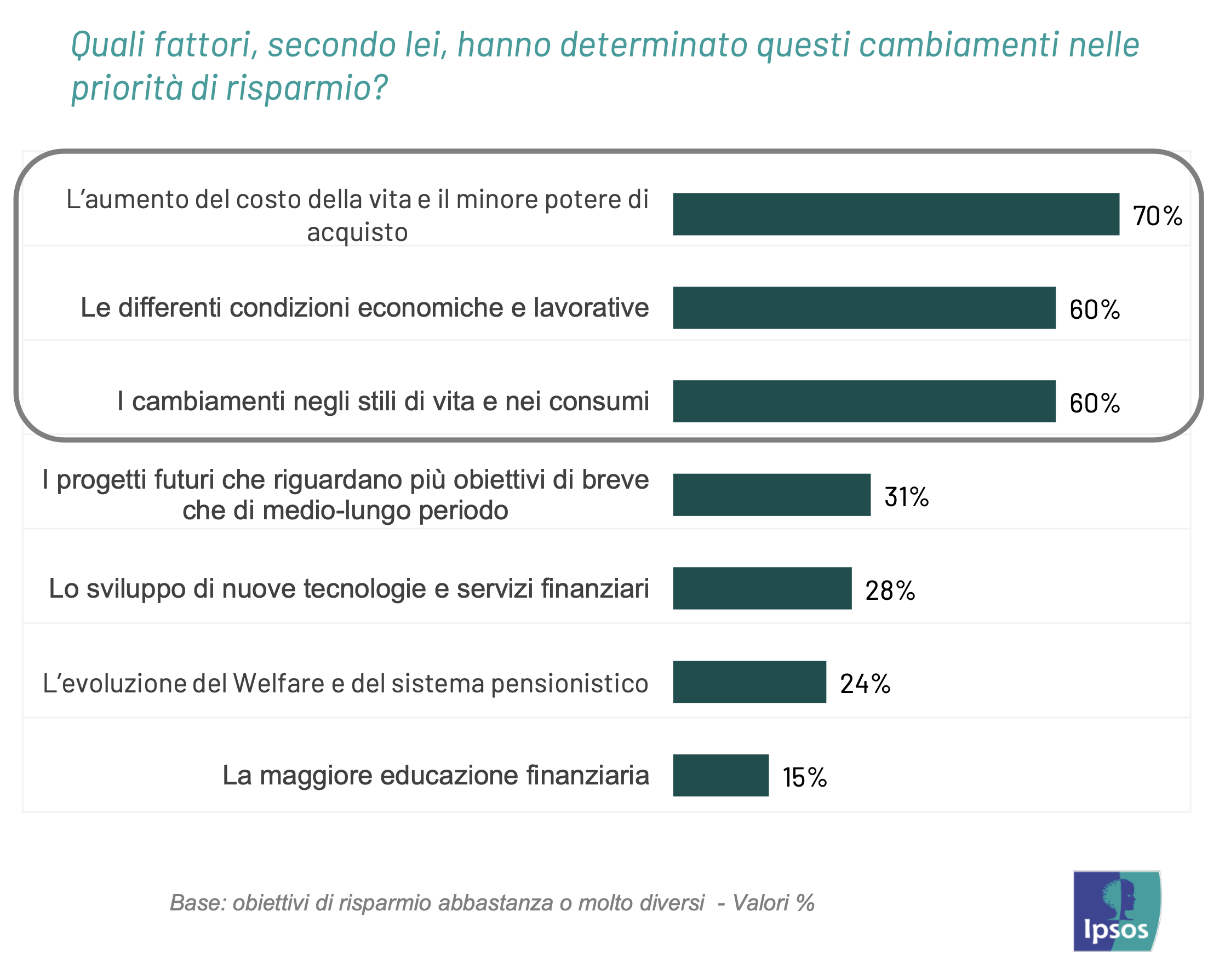 Il 33% degli italiani percepisce, inoltre, di avere una capacità di risparmio minore rispetto alle generazioni precedenti a causa delle condizioni macroeconomiche attuali.