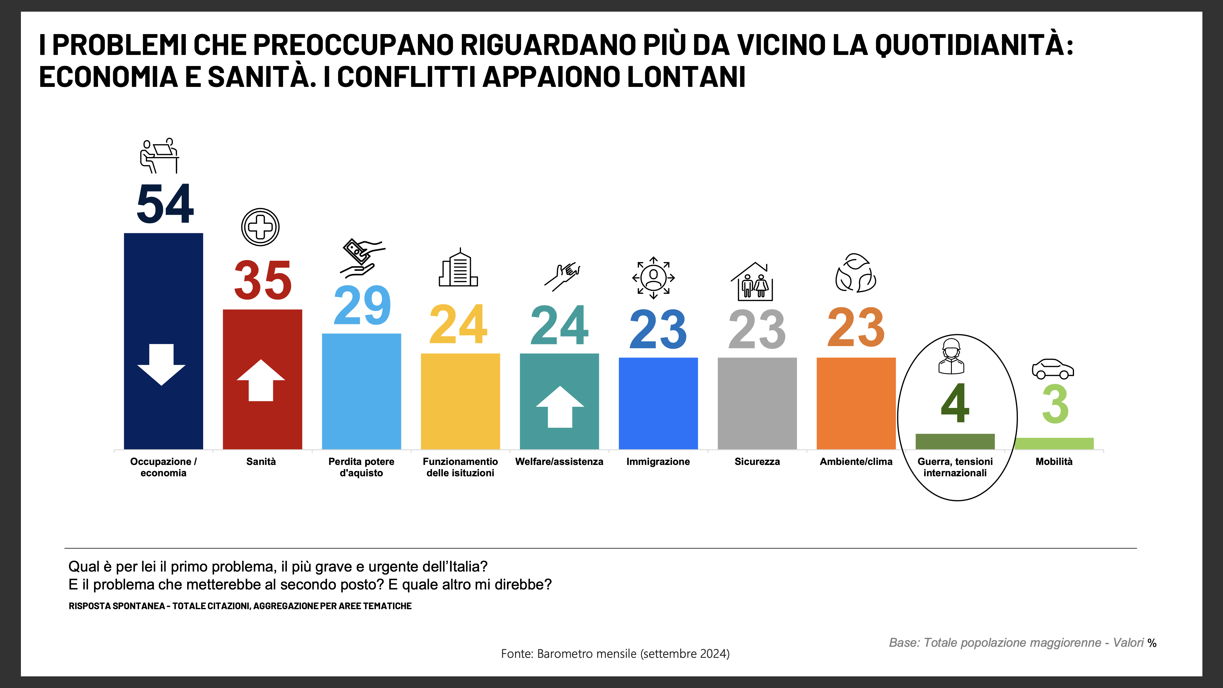 Situazione economica personale e sanità sono le principali preoccupazioni degli intervistati.