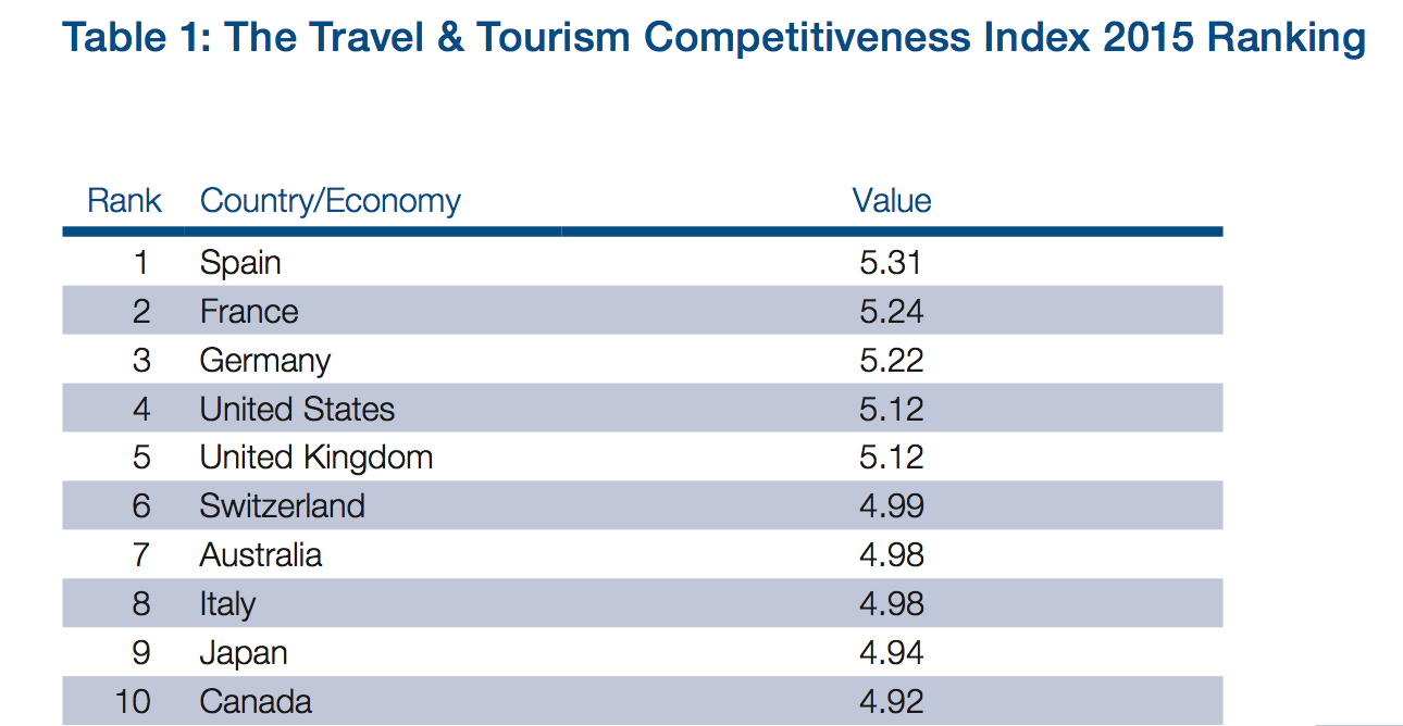 Il World Economic Forum ha pubblicato il “Travel and Tourism Competitiveness Report 2015”.