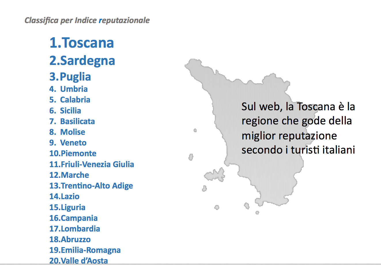 La società Reputation Manager ha pubblicato in questi giorni una ricerca sulla reputazione on line delle regioni italiane.