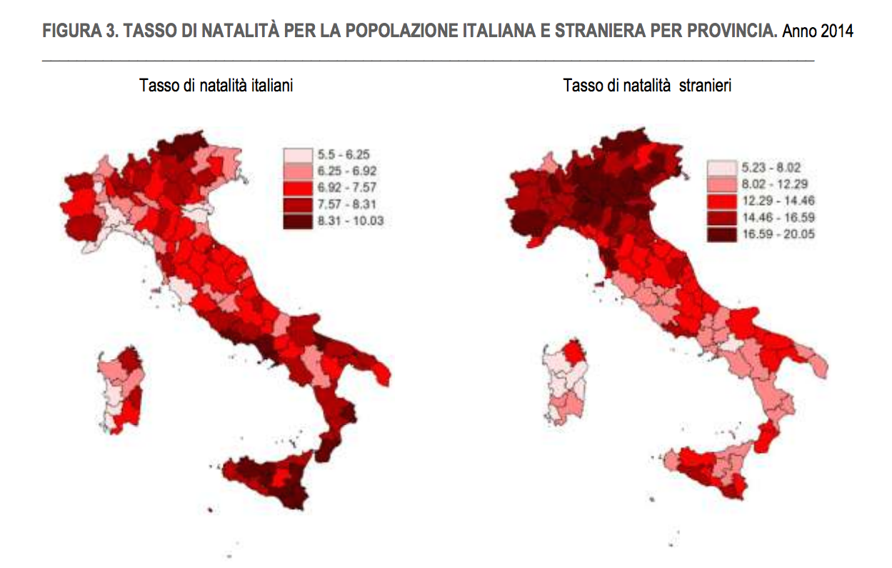 Anche i nati stranieri continuano a diminuire (-2.638 rispetto al 2013), pur rappresentando il 14,9% del totale dei nati.