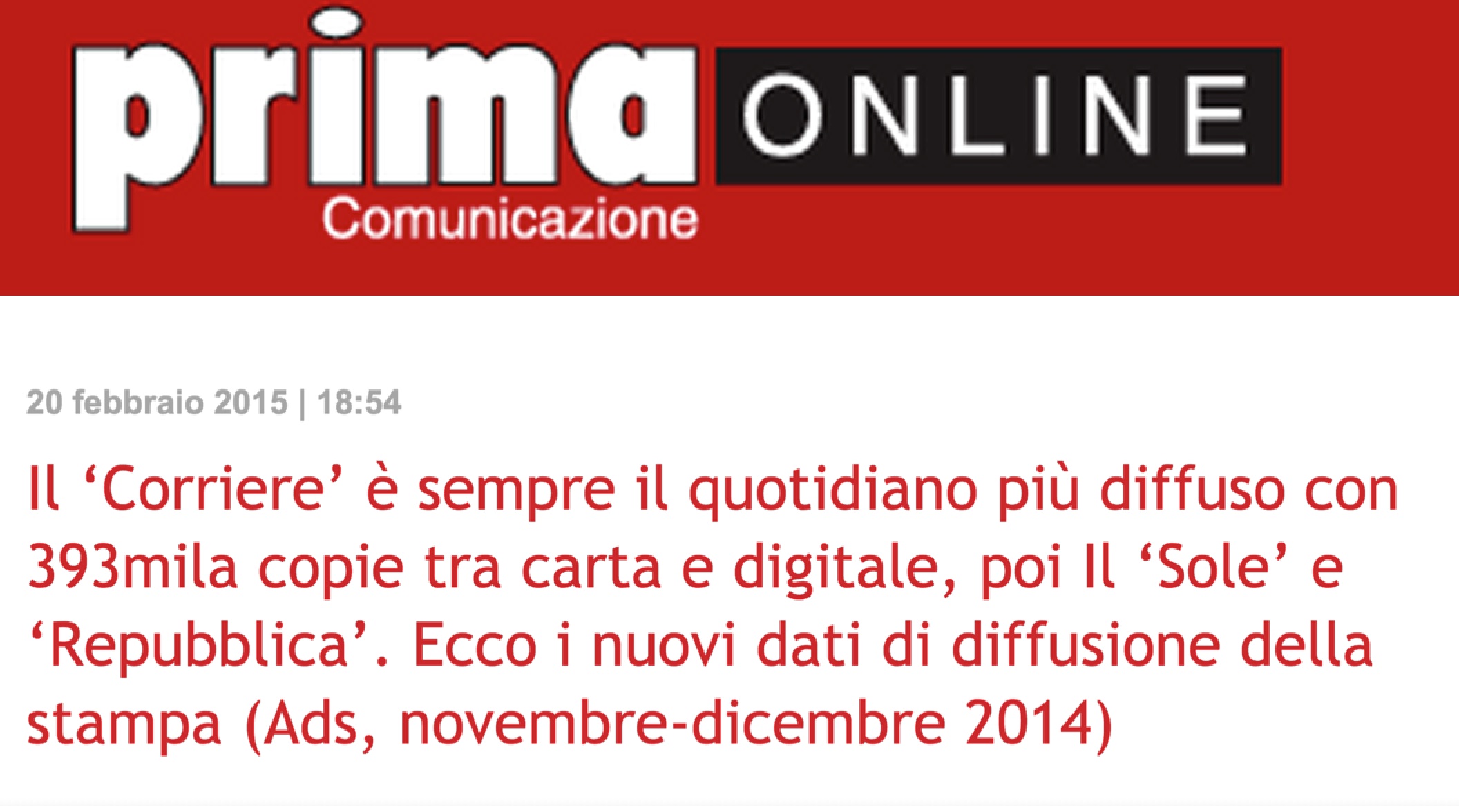 Corriere della Sera ha 2.530.000 lettori di carta e/o copie digitali replica e 2.350.000 di carta.