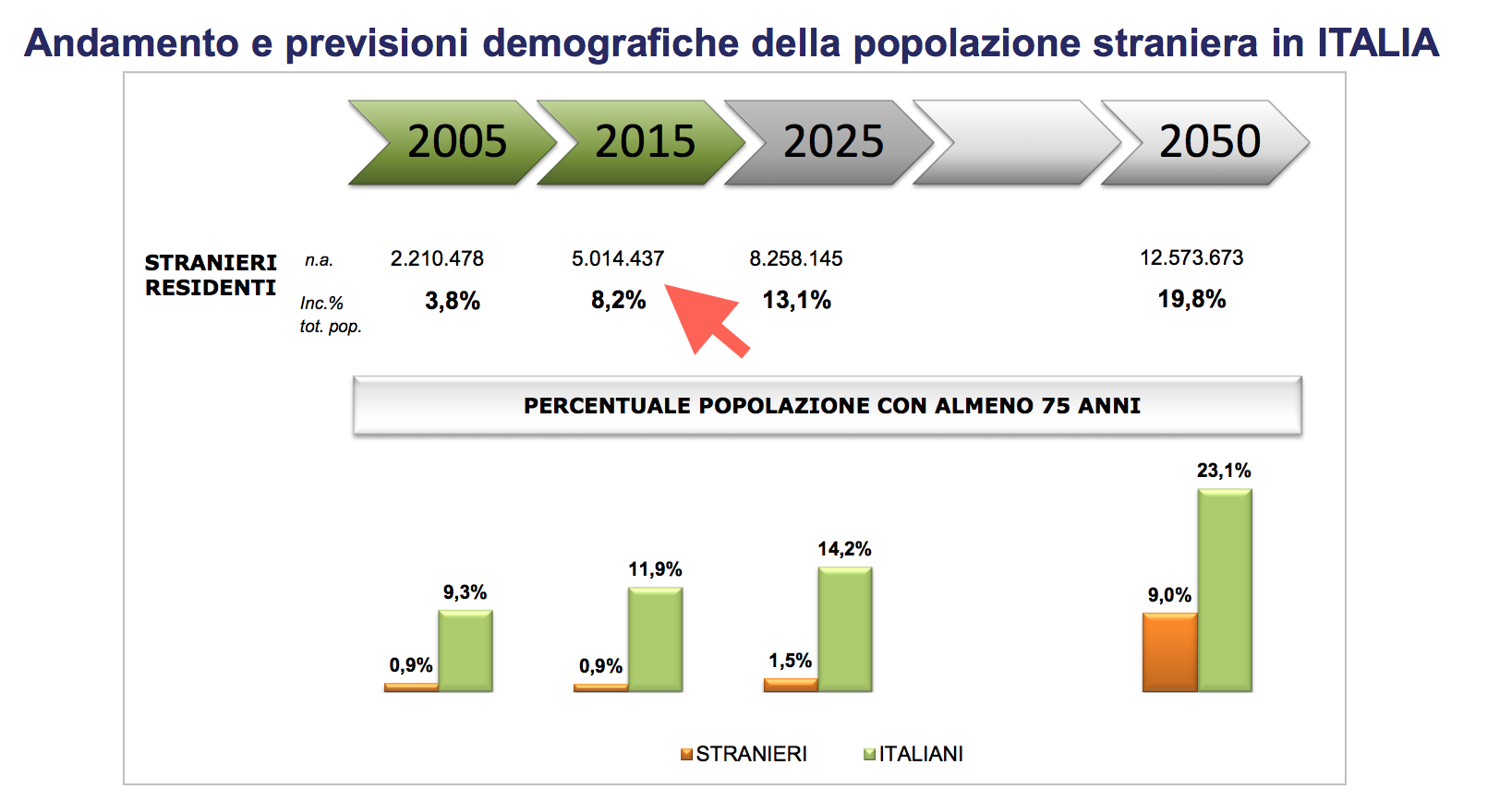 Nel 2015 la popolazione straniera ha superato quota 5 milioni e rappresenta l’8,2% della popolazione complessiva.
