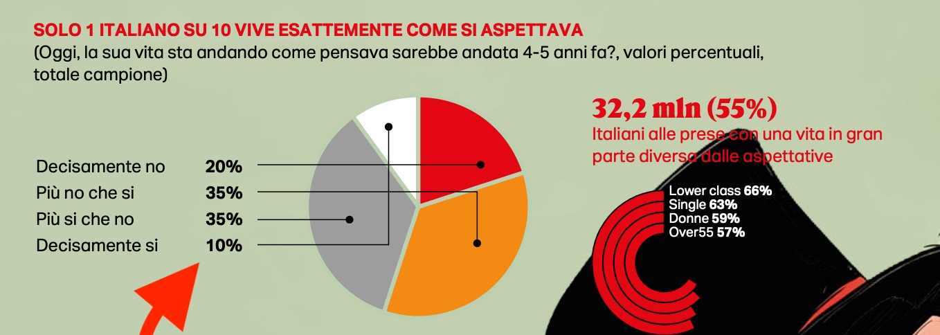 Solo il 10% degli italiani è PIENAMENTE SODDISFATTO DELLA PROPRIA VITA.