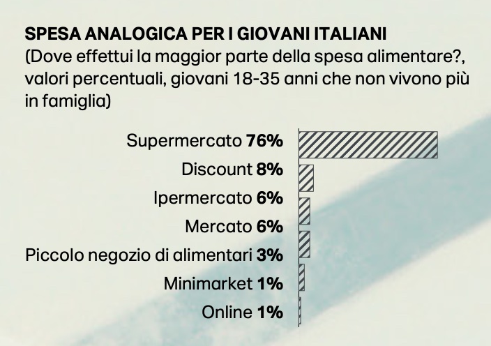 Anche i giovani preferiscono fare la spesa nei punti vendita fisici.
