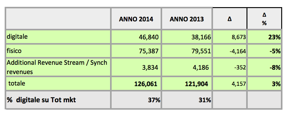 Per scaricare i dati completi di Fimi sul mercato discografico italiano nel 2014, clicca QUI