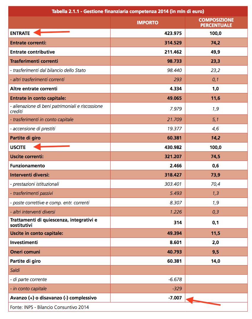 Nel 2014 il disavanzo Inps è stato di 7 miliardi di euro.
