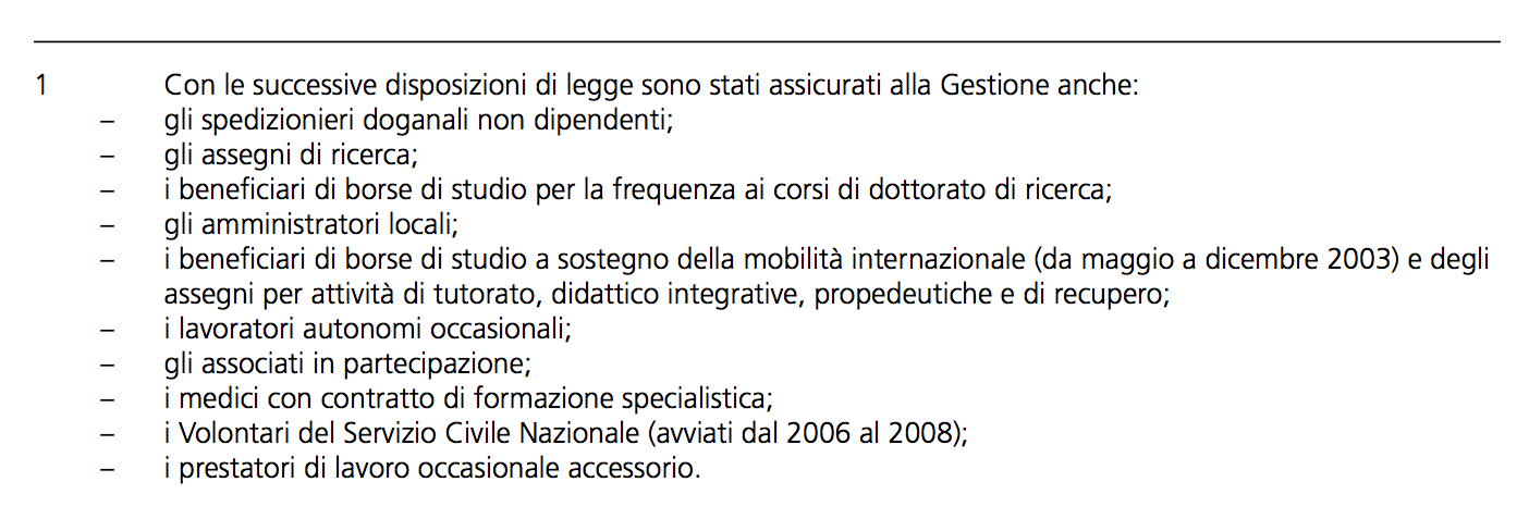 Ricordiamo che nella Gestione Separata dell’Inps non abbiamo solo Parasubordinati e Professionisti non iscritti ad Albi ma anche queste nuove categorie: