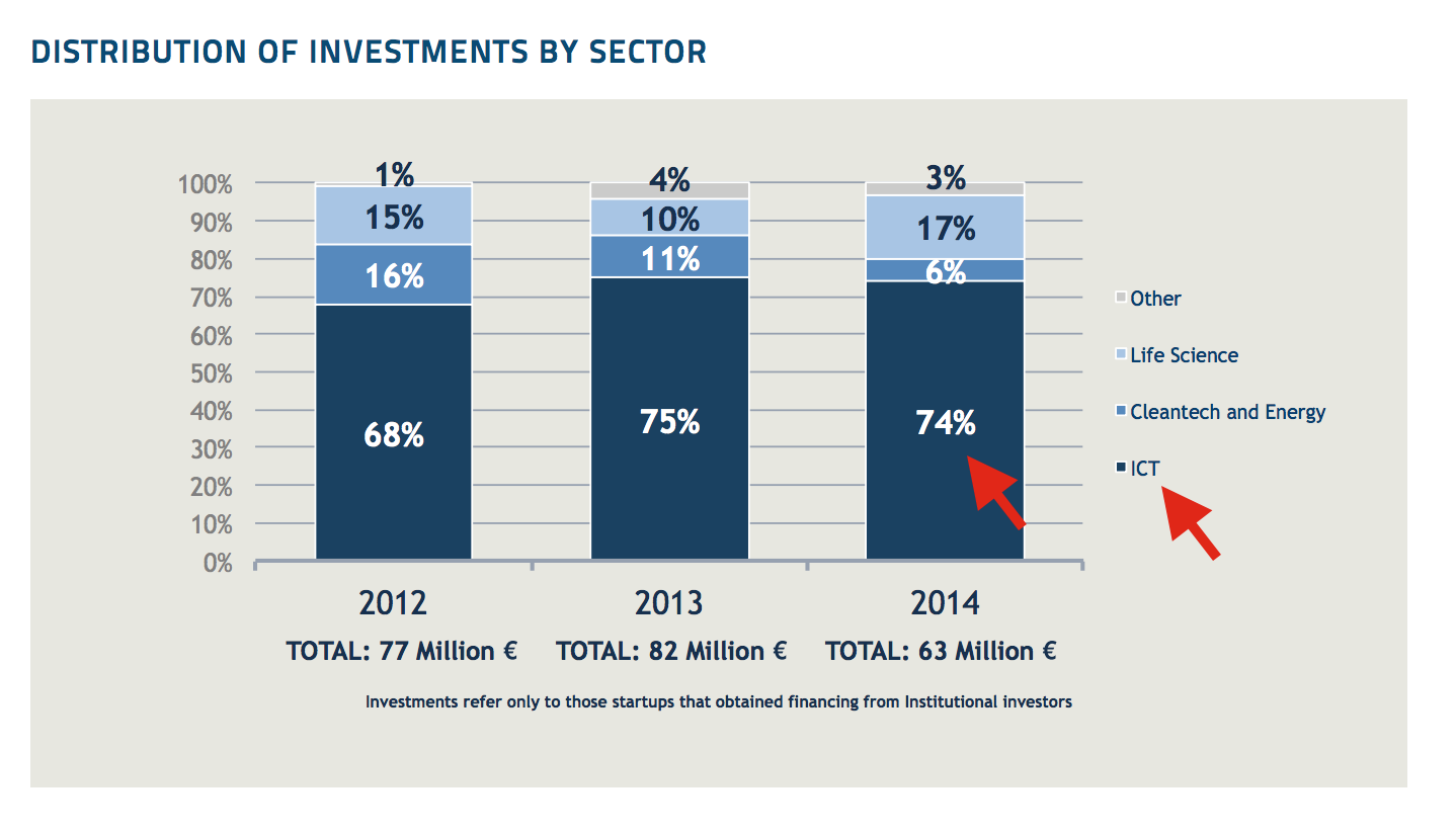 Le startup del settore ICT hanno mantenuto nel 2014, il primato delle imprese più finanziate: hanno ricevuto il 74% dei fondi.