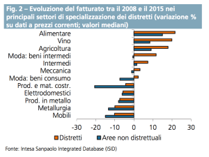 . . Intesa SanPaolo ha pubblicato il 9° Rapporto sui Distretti Industriali Italiani. . Nel biennio 2015-16 i distretti industriali hanno ottenuto buoni risultati. . La crescita cumulata del fatturato è stata pari al +1,4% (malgrado la debolezza dei prezzi). . . Fatturato e margini unitari sono ormai su livelli superiori a quelli pre-crisi. . … Continua a leggere
