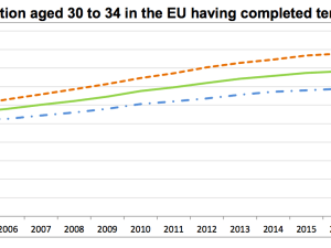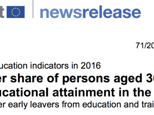 . . Eurostat ha pubblicato un interessante studio sui laureati all’interno dell’U.E. . . Nel 2016, la percentuale di laureati tra le persone tra i 30 e i 34 anni è cresciuta in tutti i paesi membri dell’Ue rispetto al 2002 ma l’Italia è tra gli Stati con la percentuale più bassa (26,2%). . Una quota inferiore a … Continua a leggere