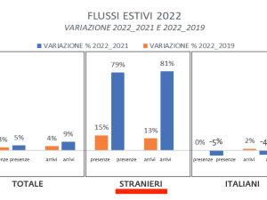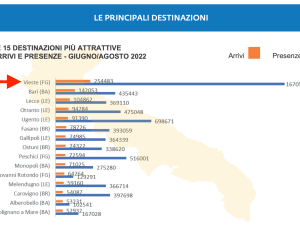 . Rino Scoppio . PugliaPromozione ha pubblicato i dati sui flussi turistici in Puglia per l’estate 2022. . Ecco i principali indicatori. . Da giugno ad agosto 2022 si registrano 2.181.102 arrivi e 10.221.699 pernottamenti. . La variazione è del +4,2% e del +3,1% rispetto allo stesso periodo del 2019 (periodo pre-pandemia). . La … Continua a leggere