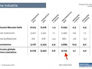 Il Centro Studi Cosmetica Italia ha pubblicato i pre-consuntivi per il 2015. . La cosmesi italiana sta attraversando una fase positiva. . Secono l’analisi del Centro Studi Cosmetica Italia, il 2015 dovrebbe chiudersi con un fatturato di 9,7 miliardi di euro, ovvero con una crescita dei ricavi del 4% rispetto all’anno precedente. . Rimane tuttavia … Continua a leggere