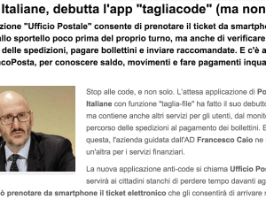 Pochi giorni fa ha debuttato la nuova applicazione di Poste Italiane. Si chiama Ufficio Postale e servirà ai cittadini stanchi di perdere tempo davanti agli sportelli. L’utente può prenotare da smartphone il ticket elettronico e questo gli consentirà di arrivare nell’ufficio a ridosso del proprio turno. L’effetto dell’applicazione sarà quello di ridurre i tempi di attesa, … Continua a leggere